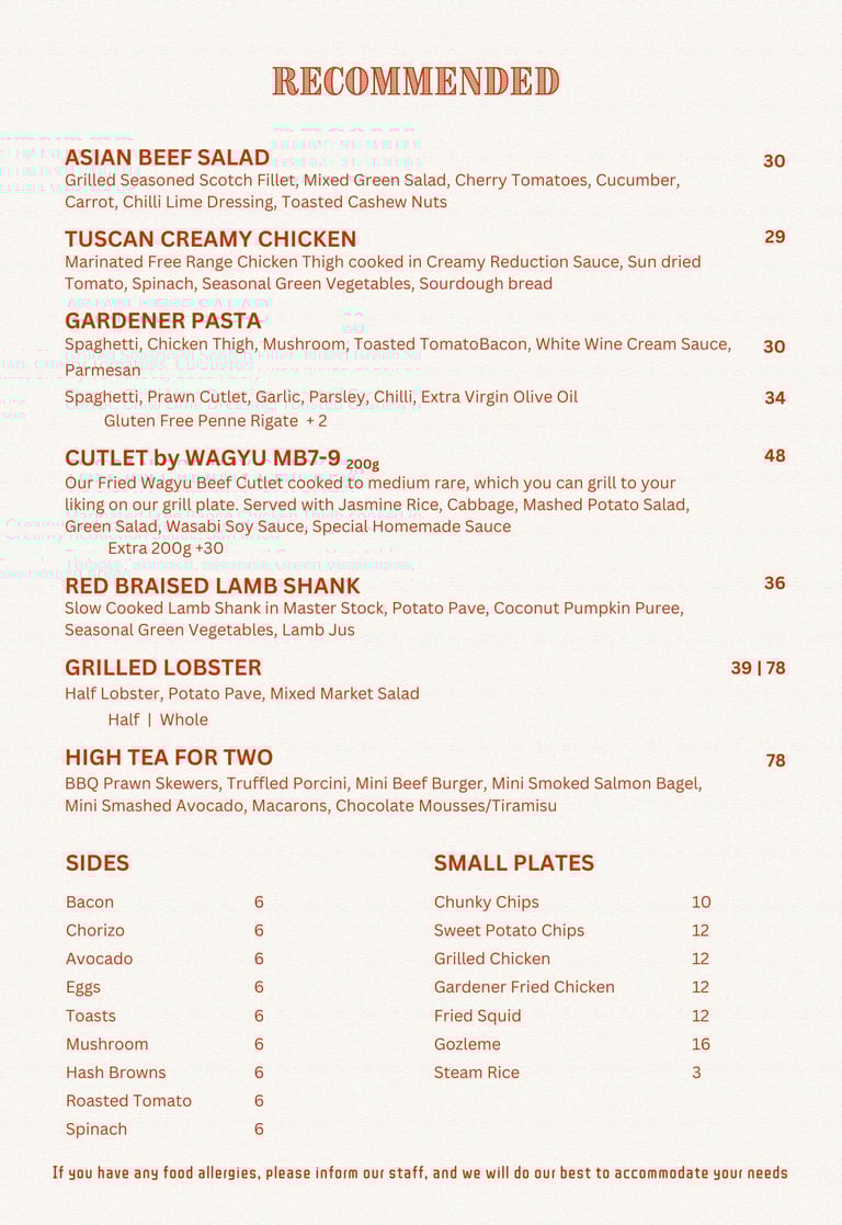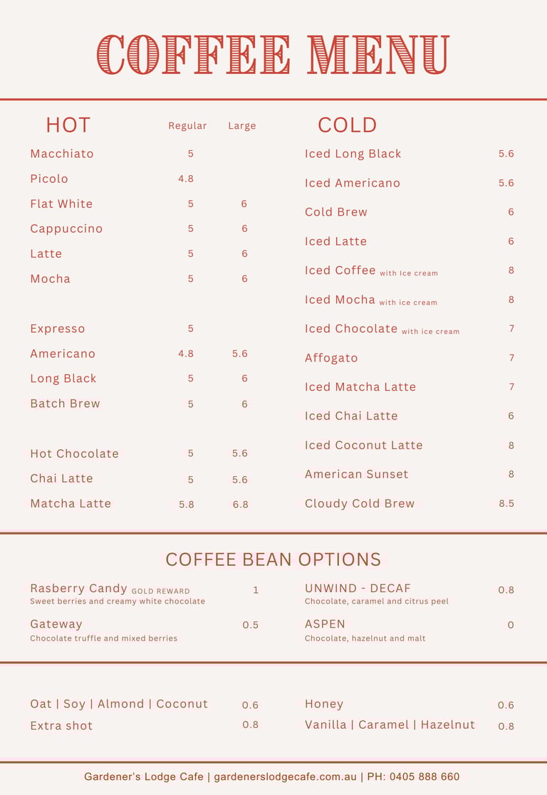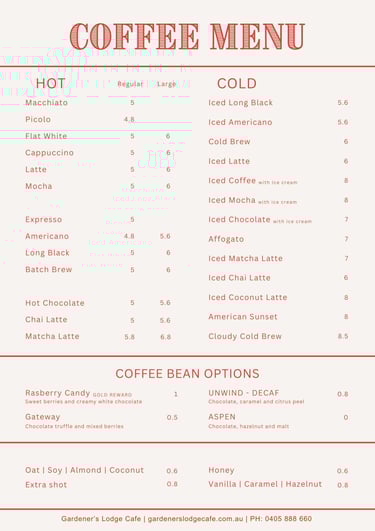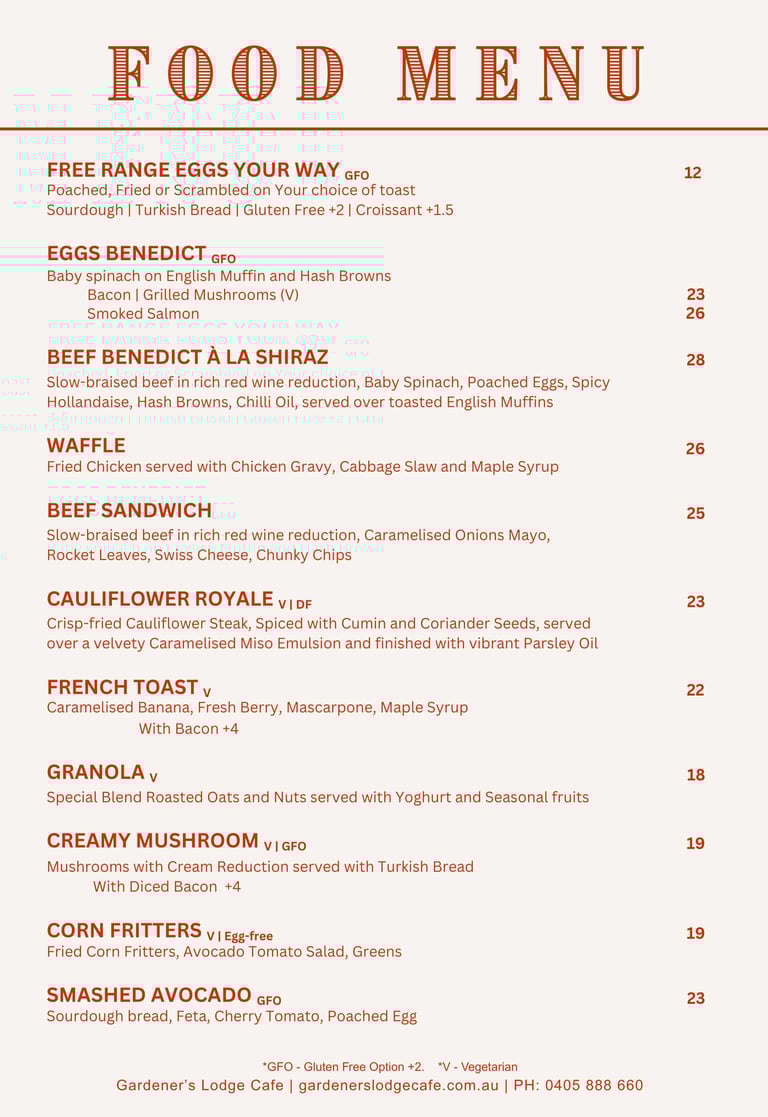 Open 7 daysOperating Hours: 8:30 AM – 5:00 PMKitchen Hours: 8:30 AM – 2:00 PM